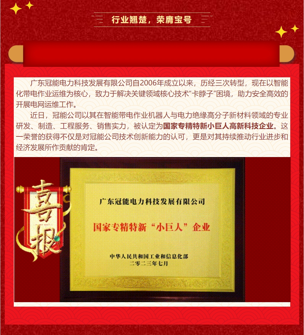 Guangdong Guanneng Electric Power Technology Development Co., Ltd. has been awarded the title of National Specialized, Refined, Unique and New Small Giant Enterprise, leading the future innovation of electric power technology
