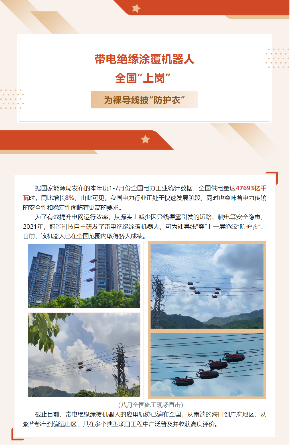 Electric insulation coating robots are on duty nationwide, covering bare wires with protective clothing