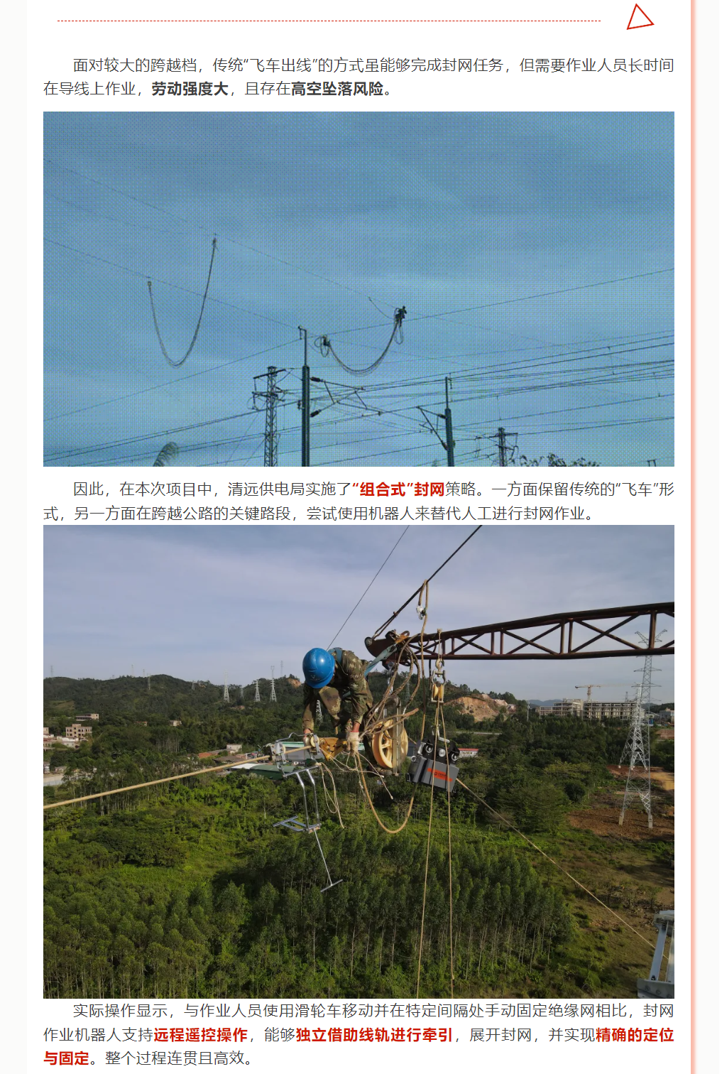 New breakthrough in intelligent network blocking! Guangdong Qingyuan's first application of robot "weaving sky net"