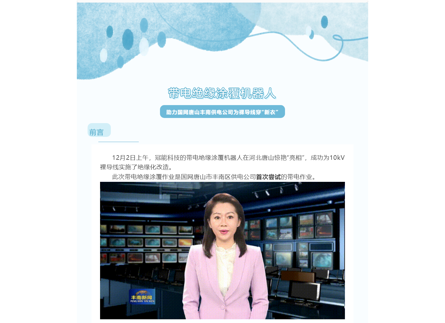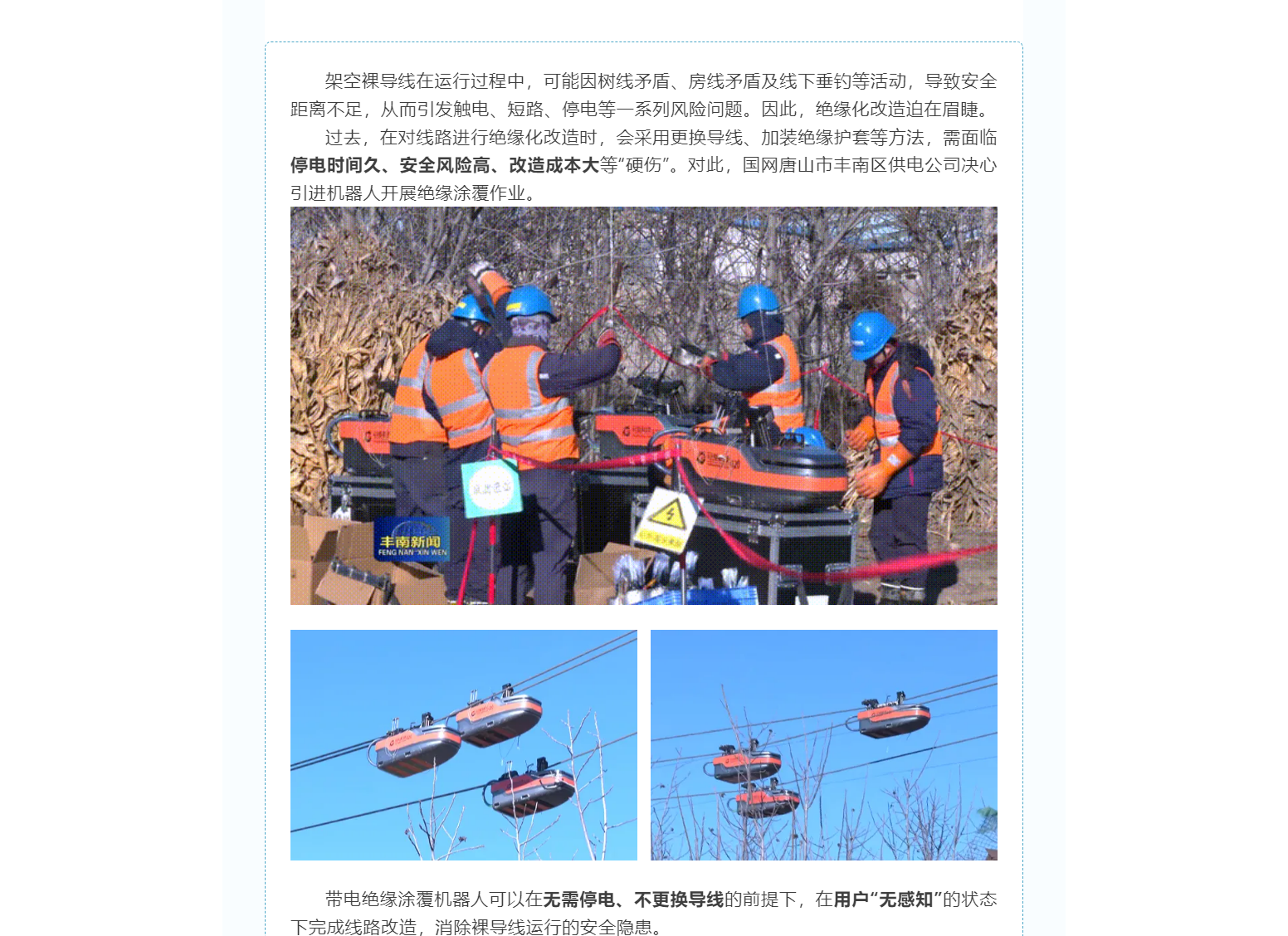Electric coating robot assists State Grid Tangshan Fengnan Power Supply Company in dressing bare wires with new clothes