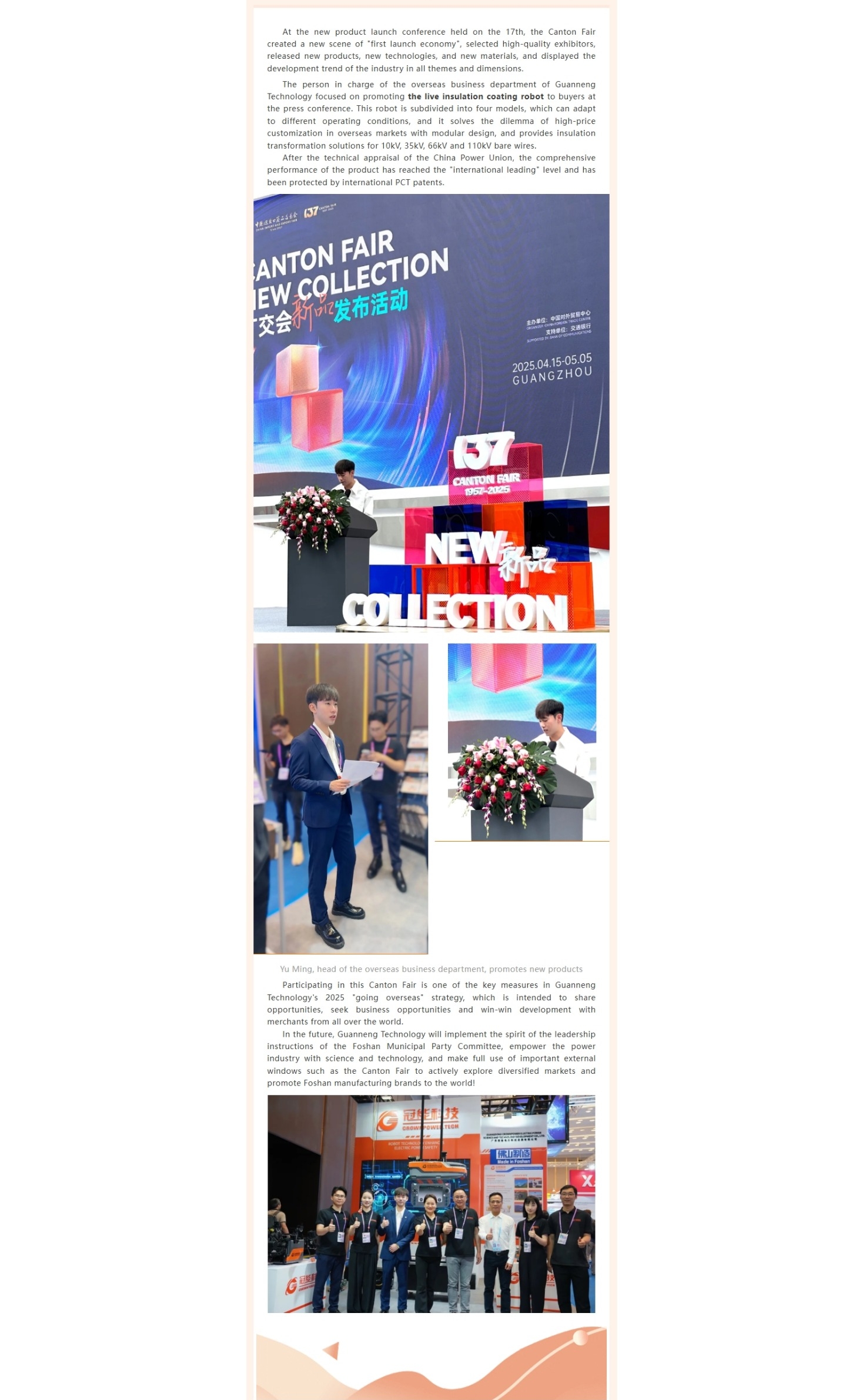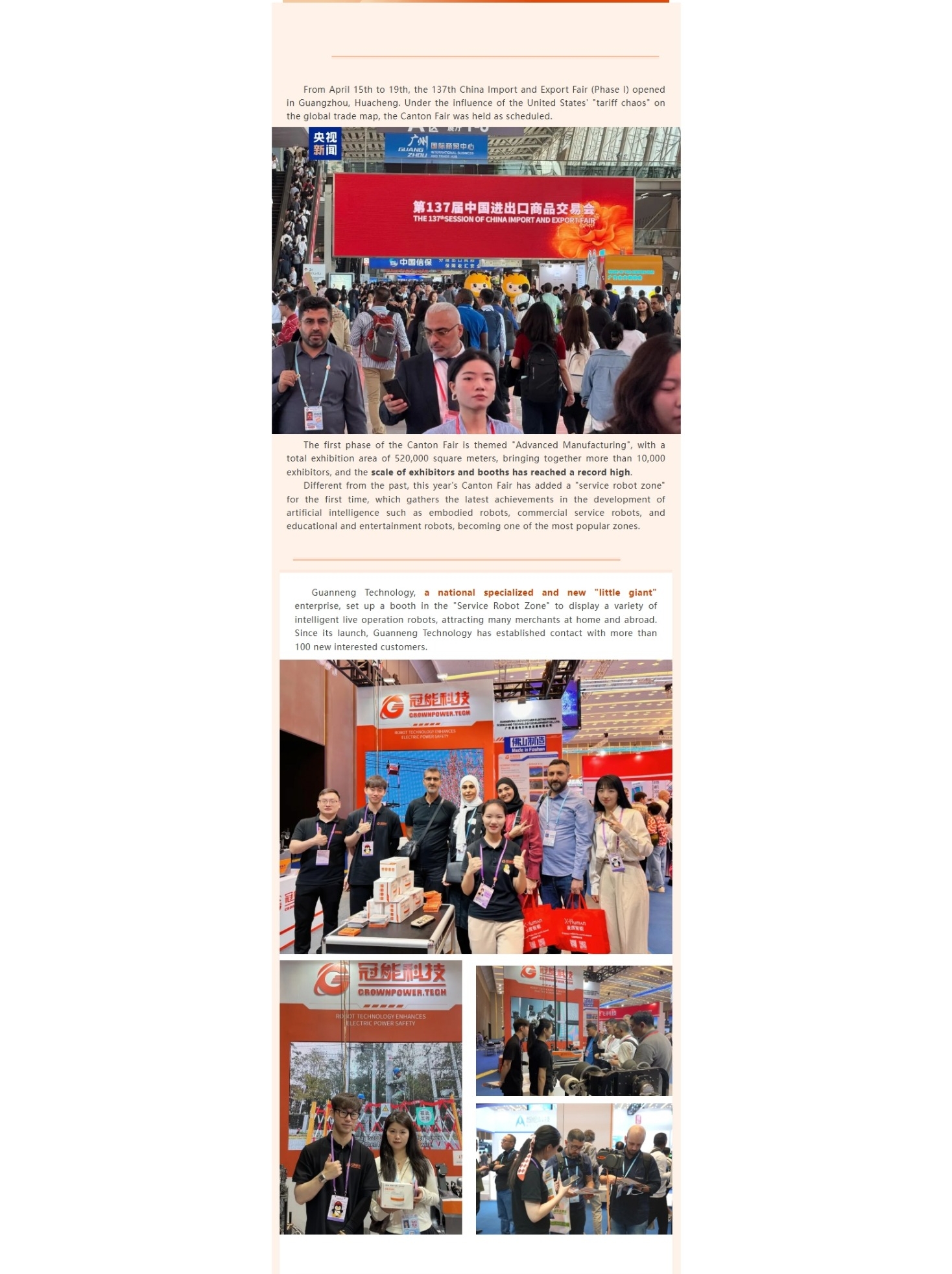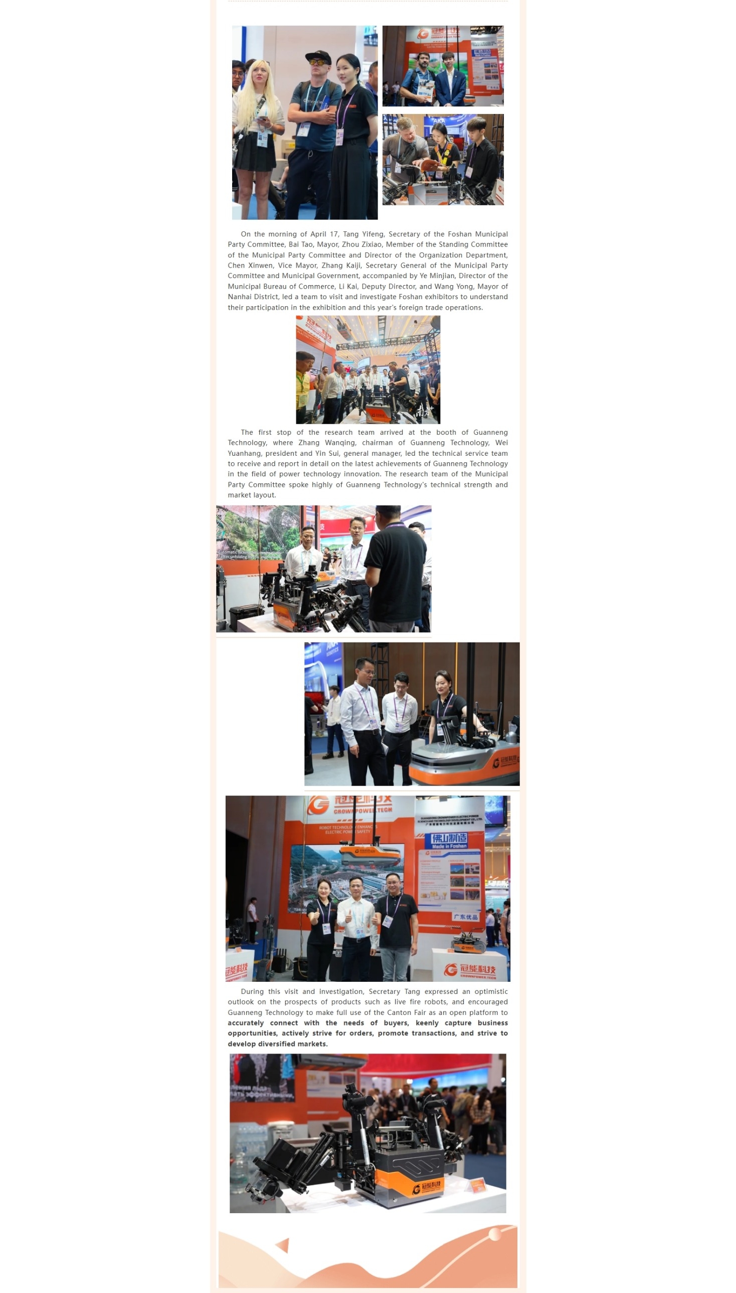 The first phase of the 137th Canton Fair focused on advanced manufacturing, and CrownPower Technology was highly affirmed by the leaders of the Foshan Municipal Party Committee